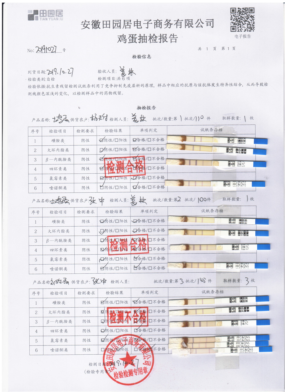 2019年10月27日鮮雞蛋檢測報告