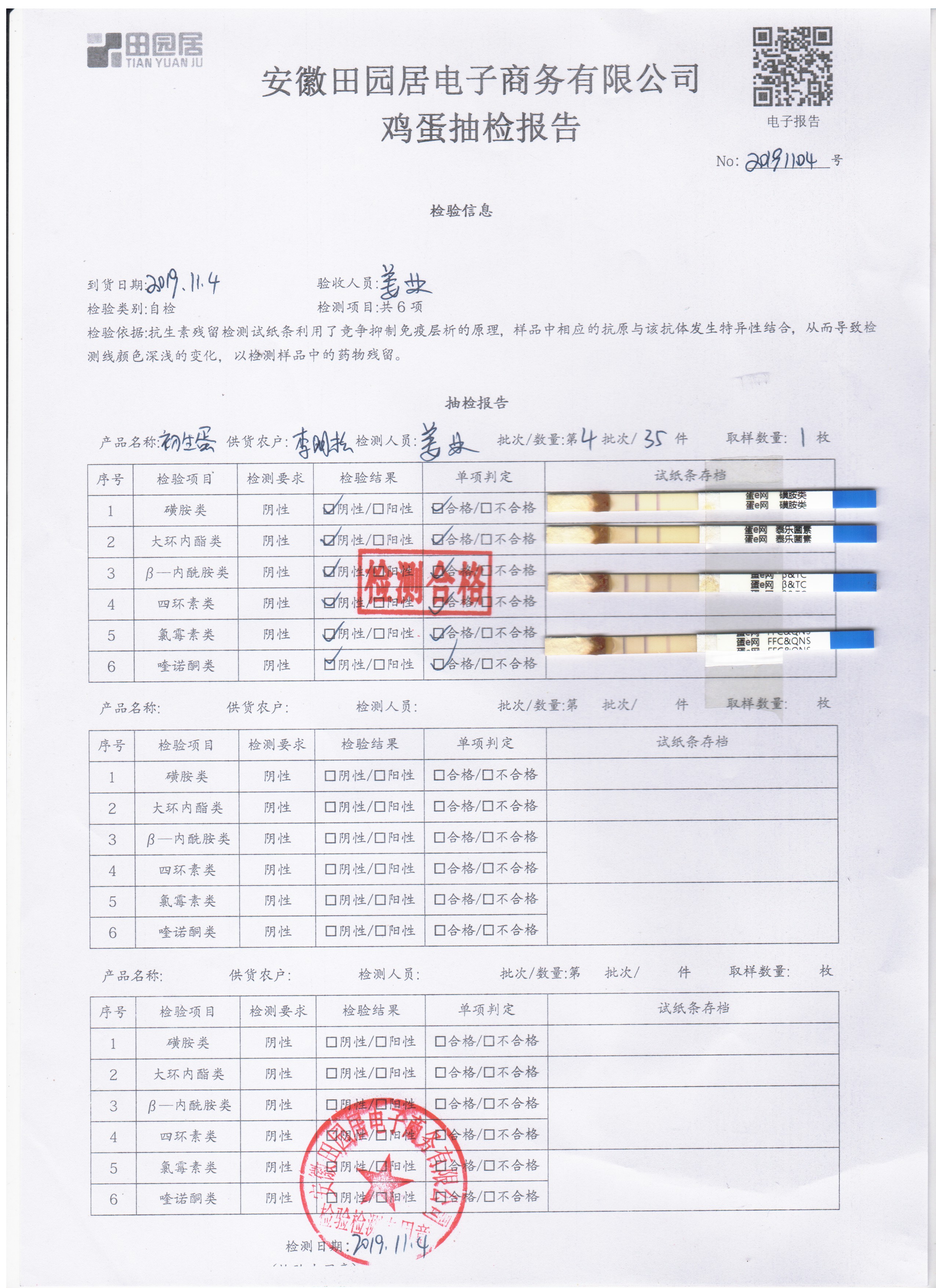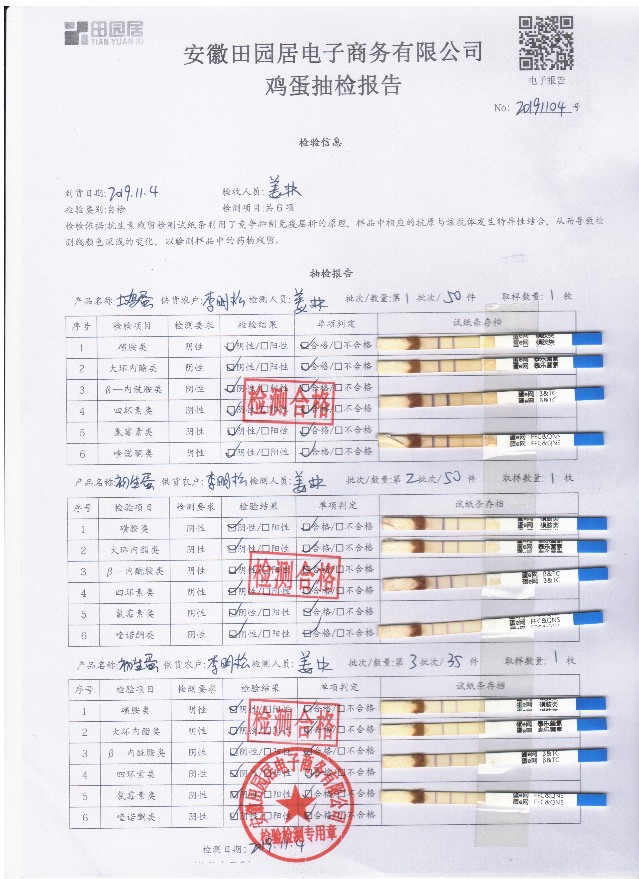 2019年11月4日鮮雞蛋檢測報告