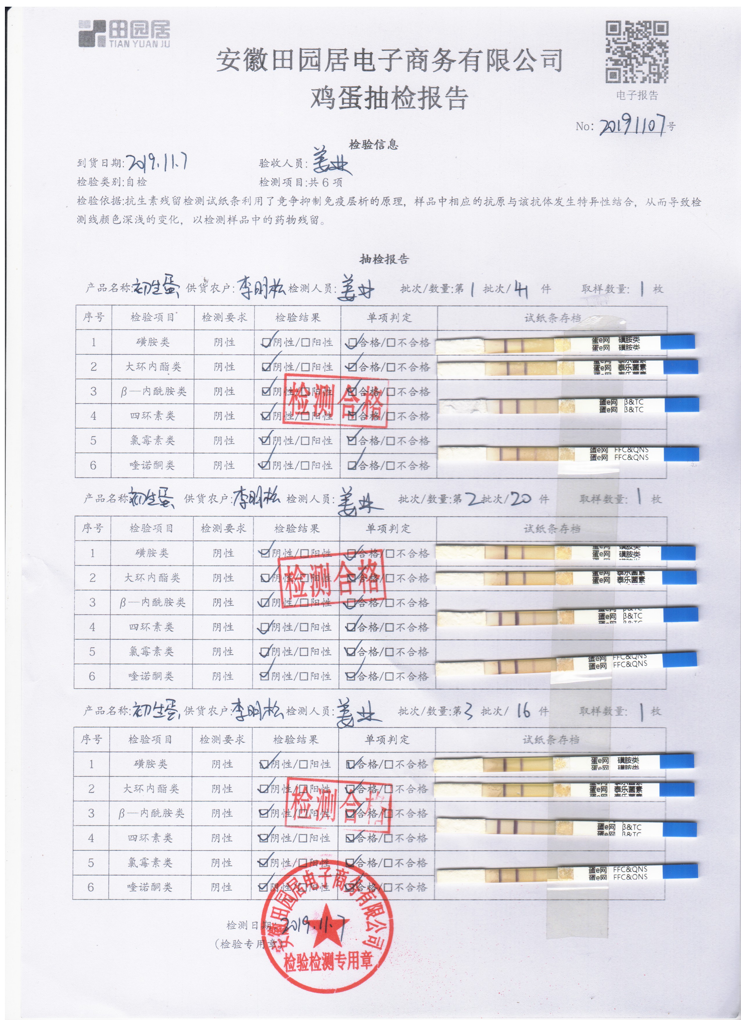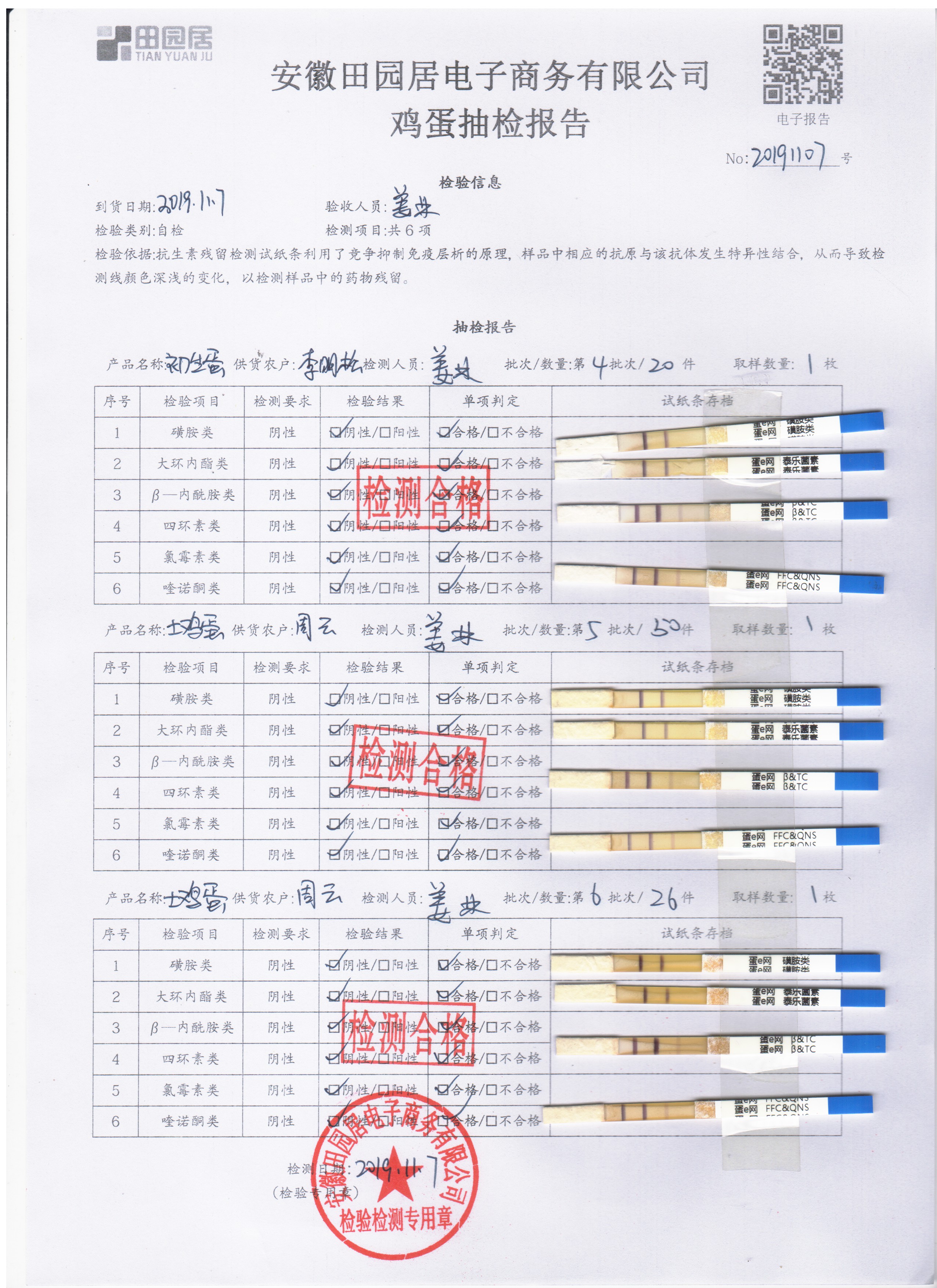 2019年11月7日鮮雞蛋檢測報告