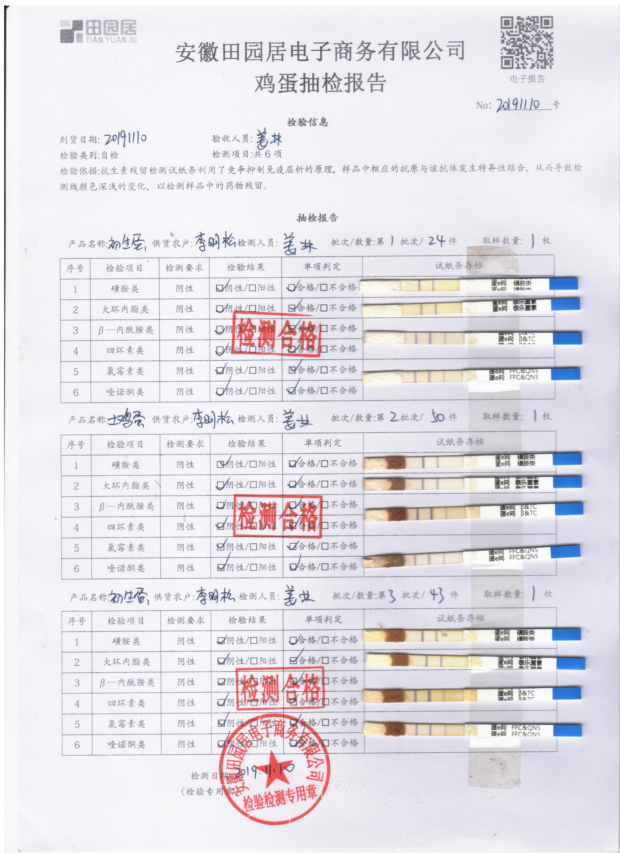 2019年11月11日鮮雞蛋檢測報告