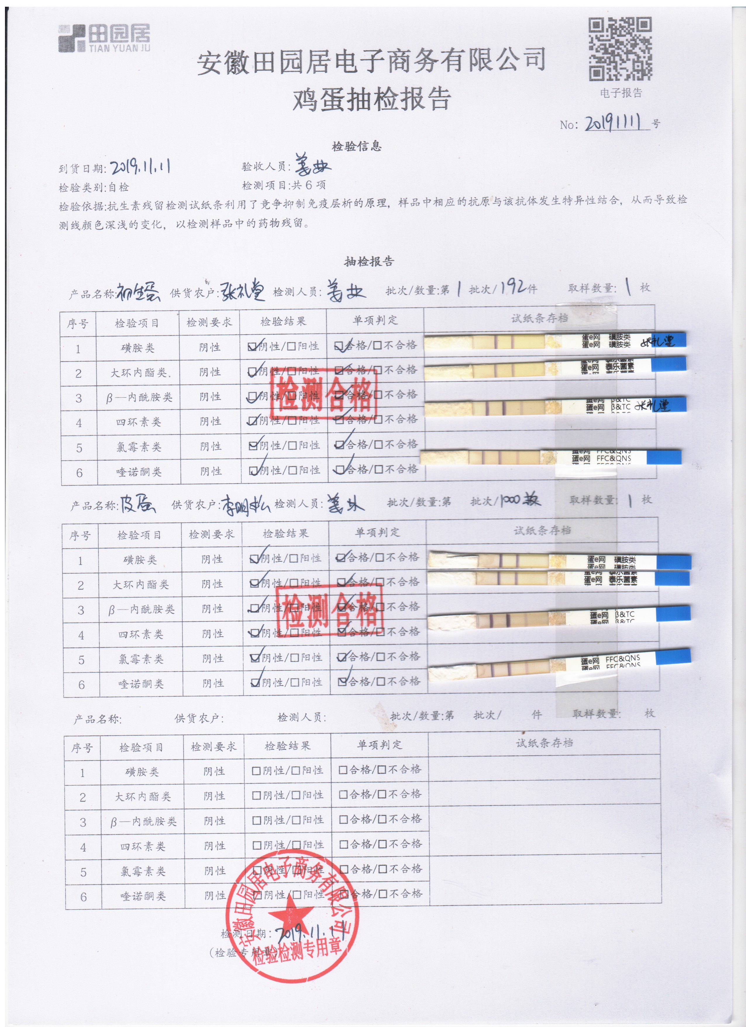 2019年11月11日鮮雞蛋檢測報告