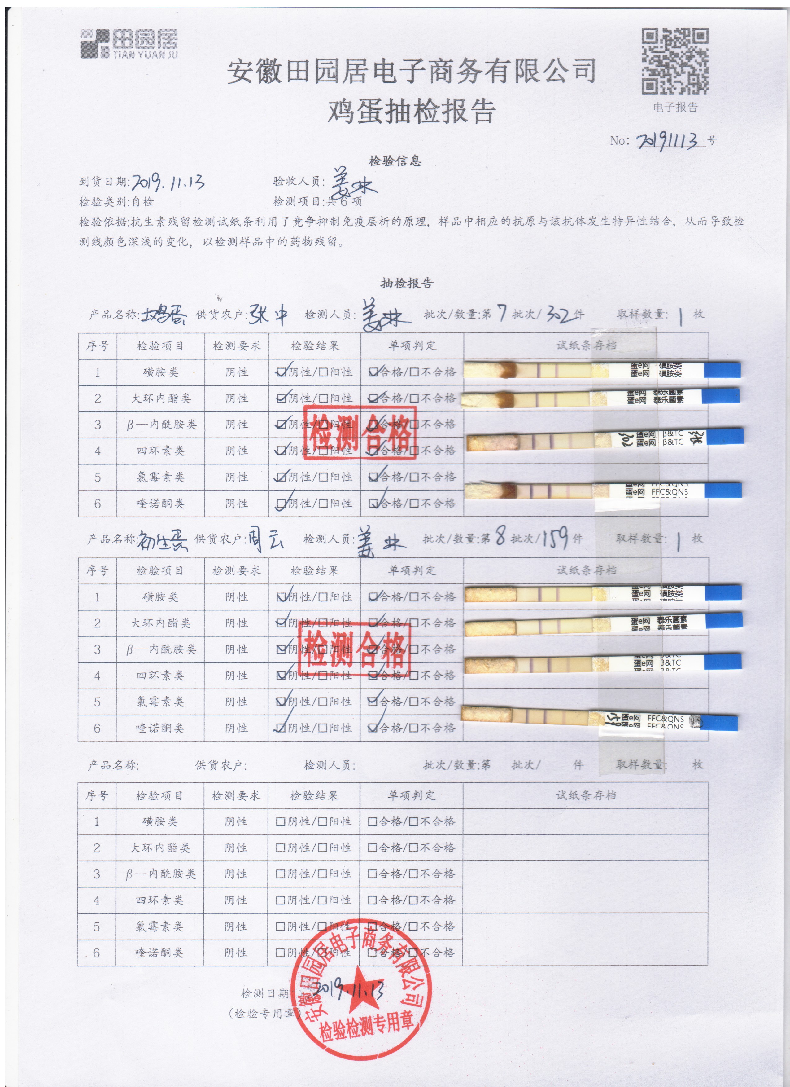 2019年11月12日鮮雞蛋檢測報告