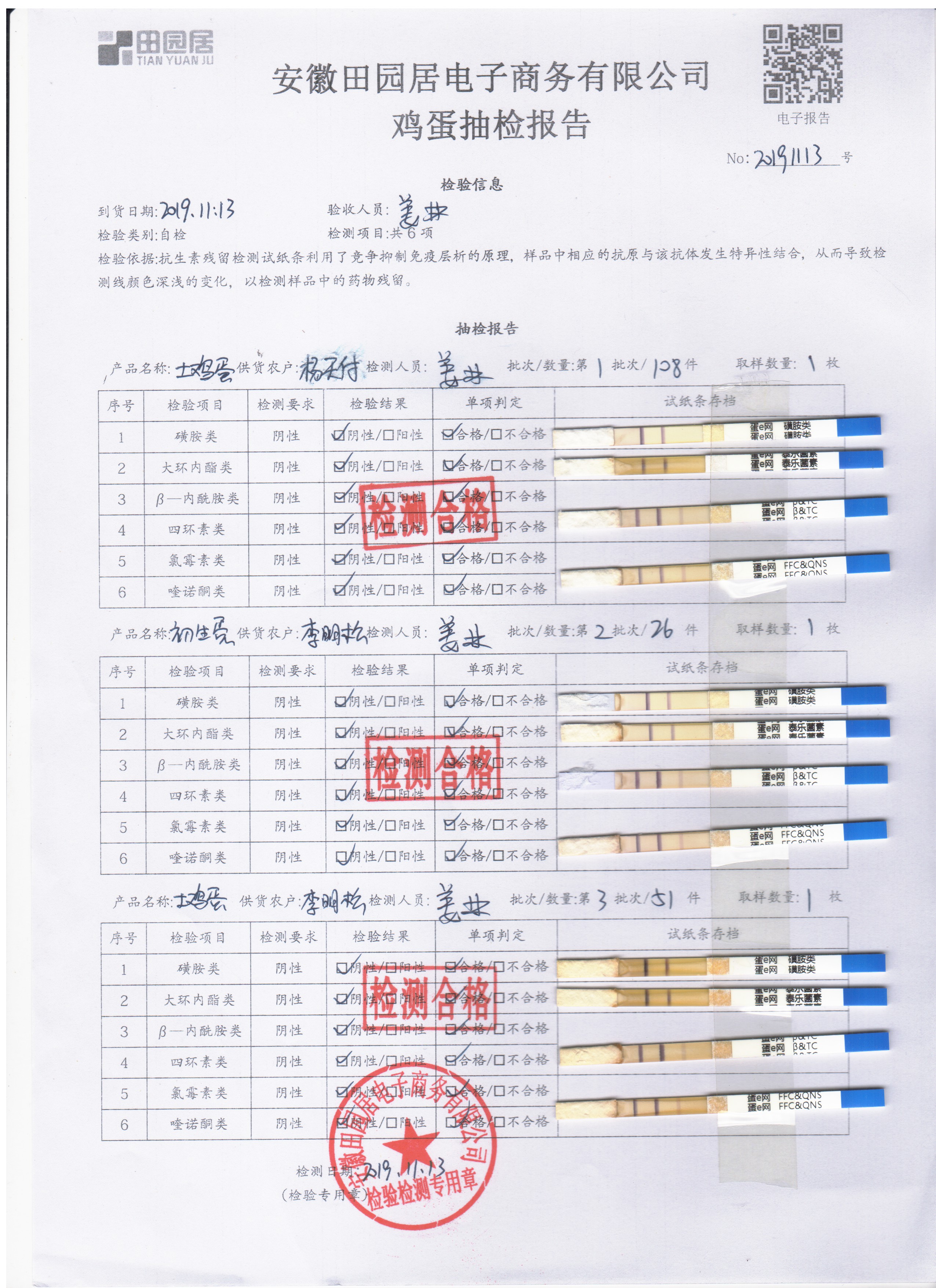 2019年11月13日鮮雞蛋檢測報告