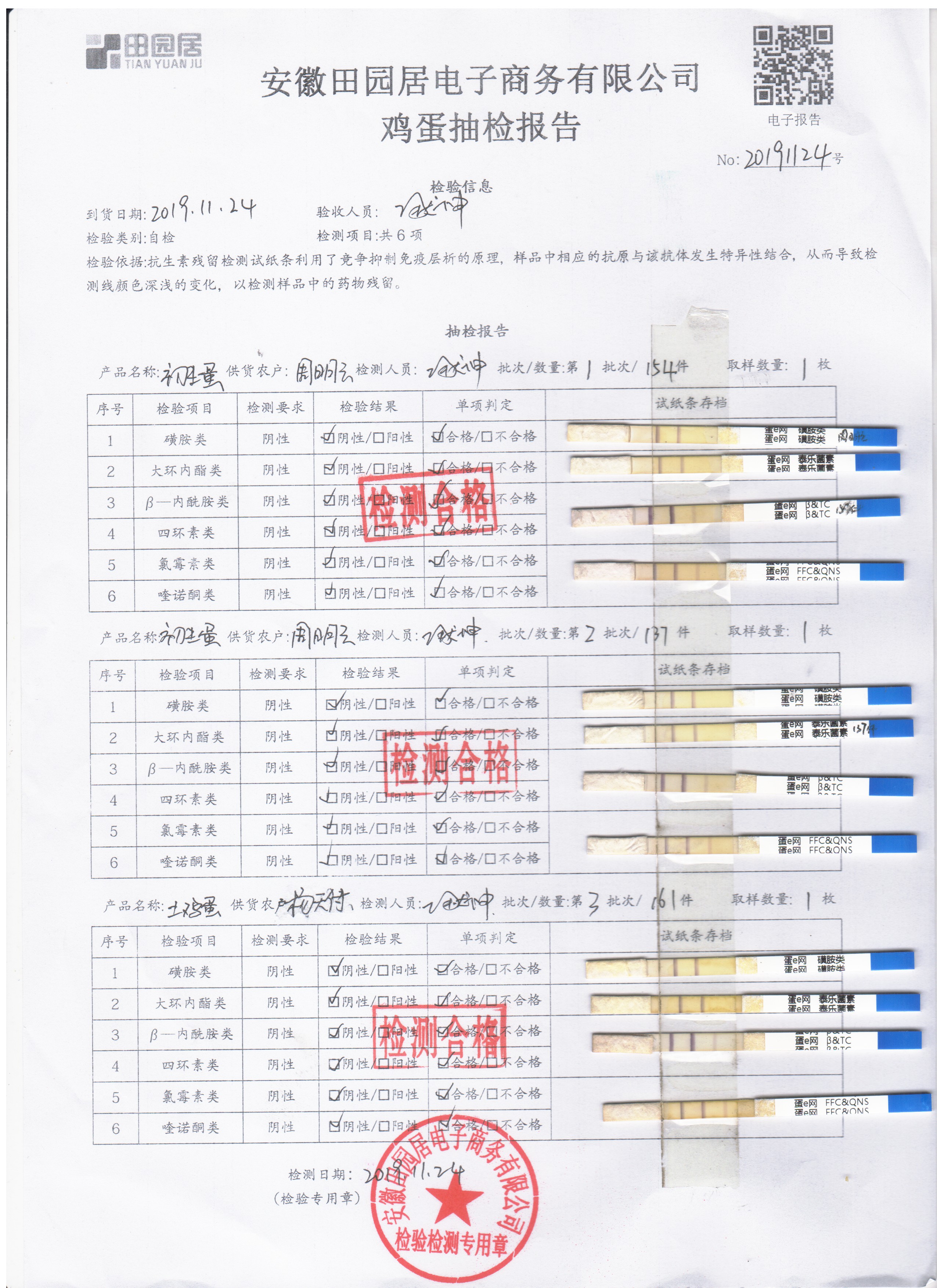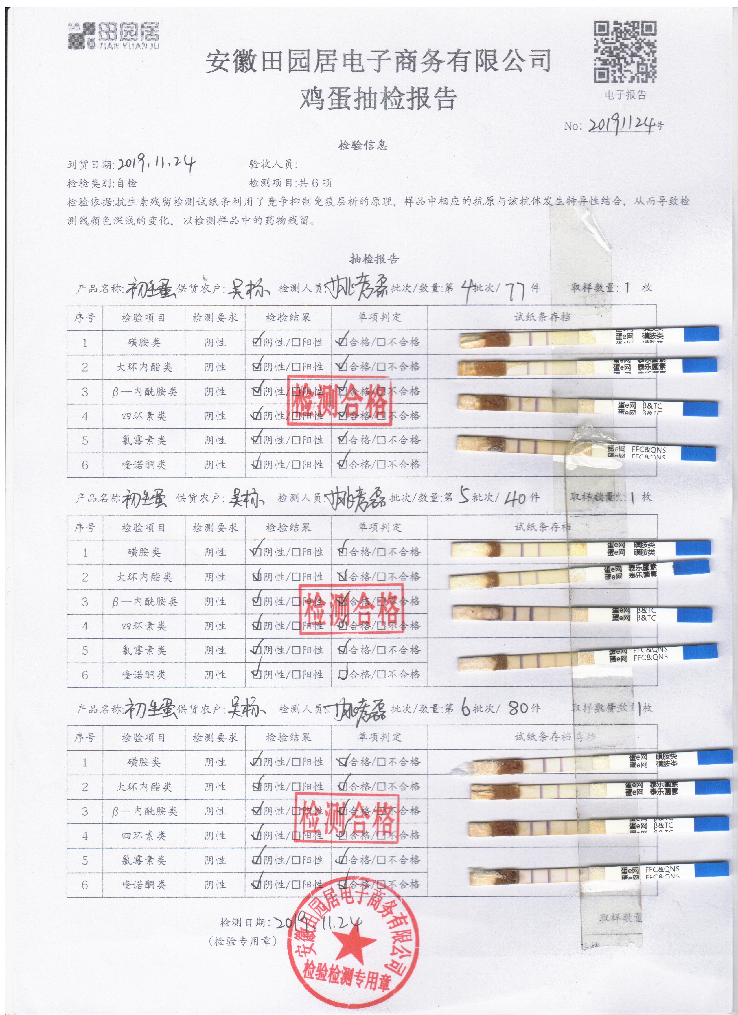 2019年11月24日鮮雞蛋檢測報告