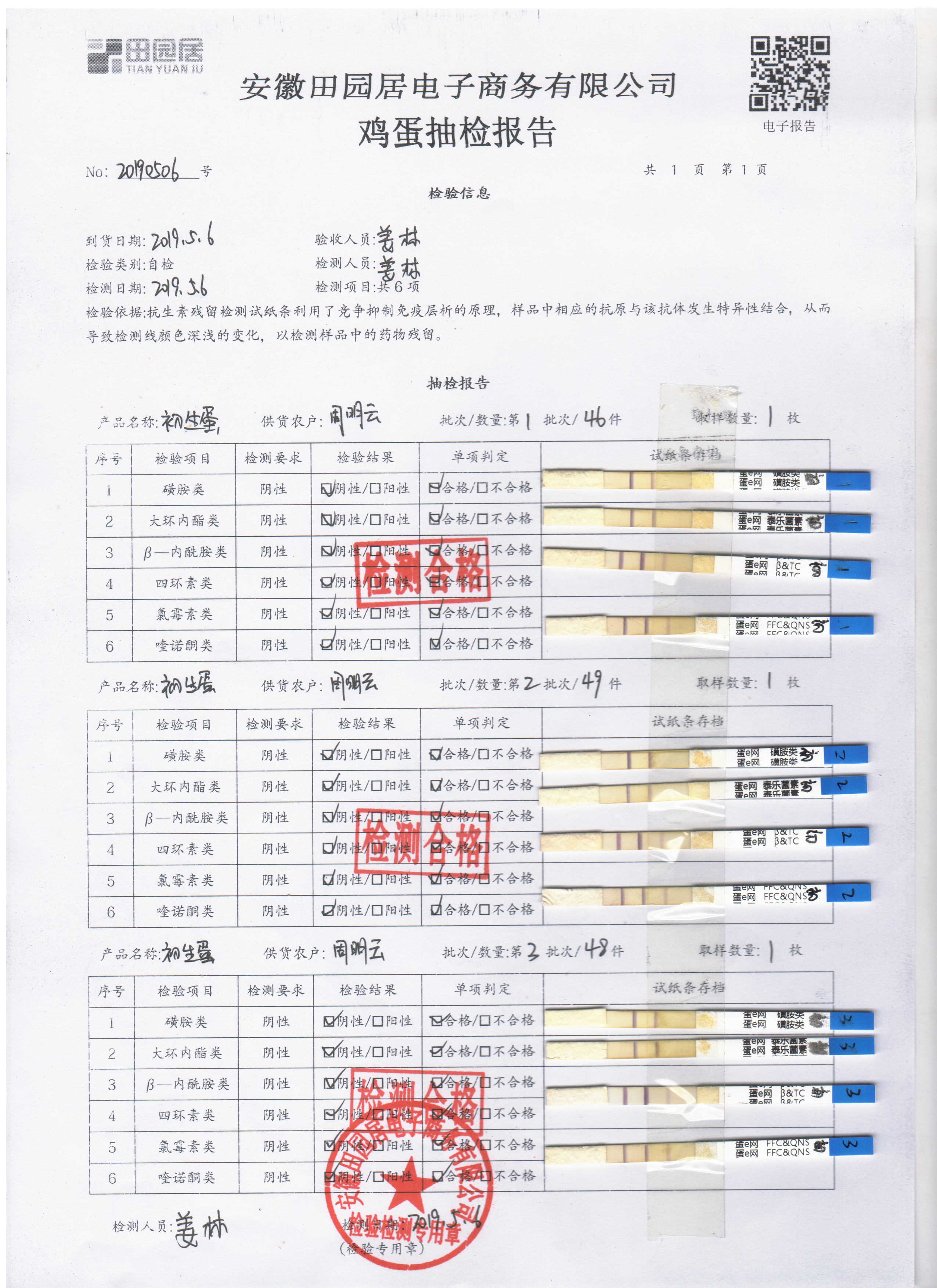 2019年5月6日雞蛋自檢報告