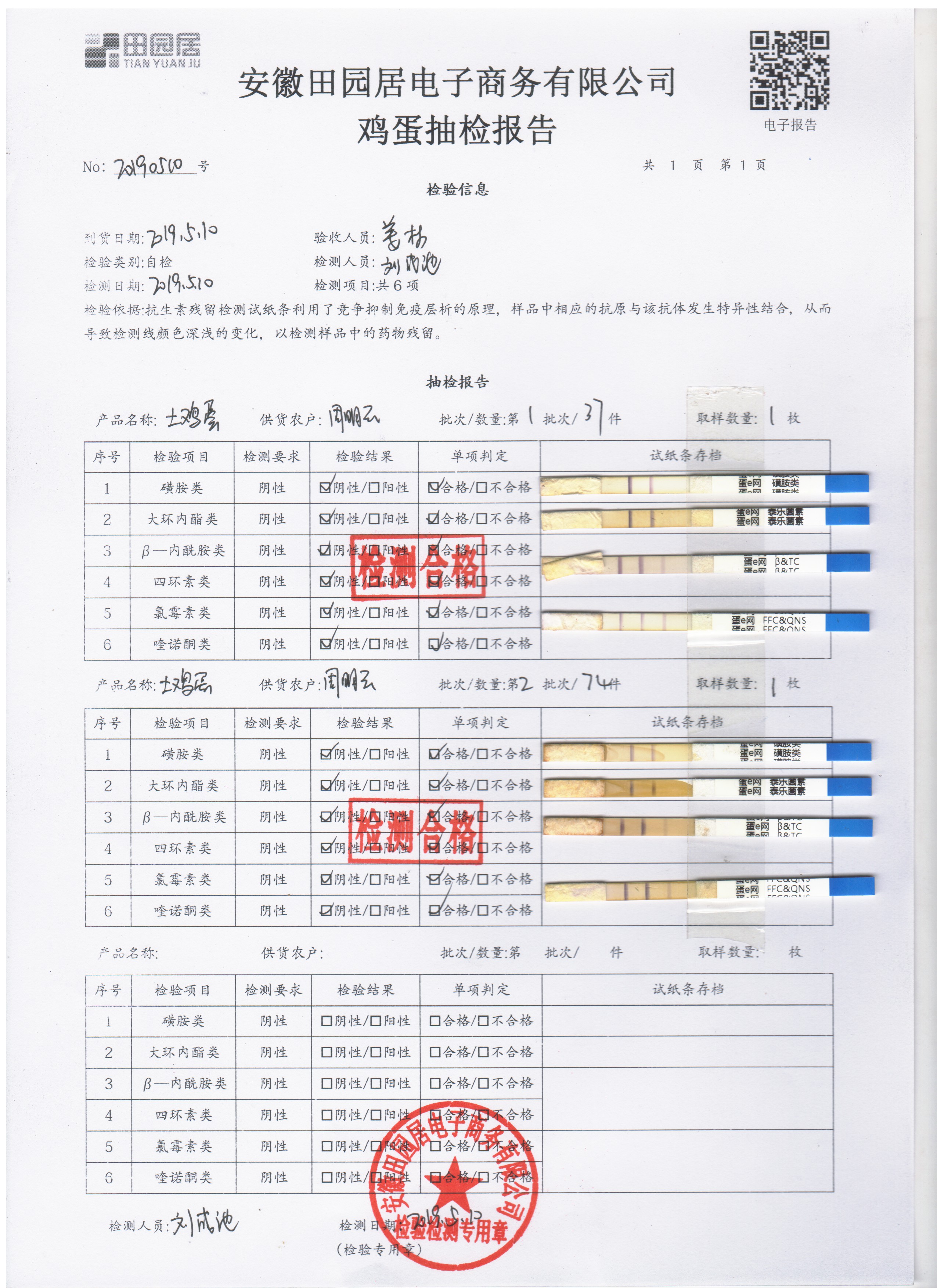 2019年5月19日雞蛋自檢報告