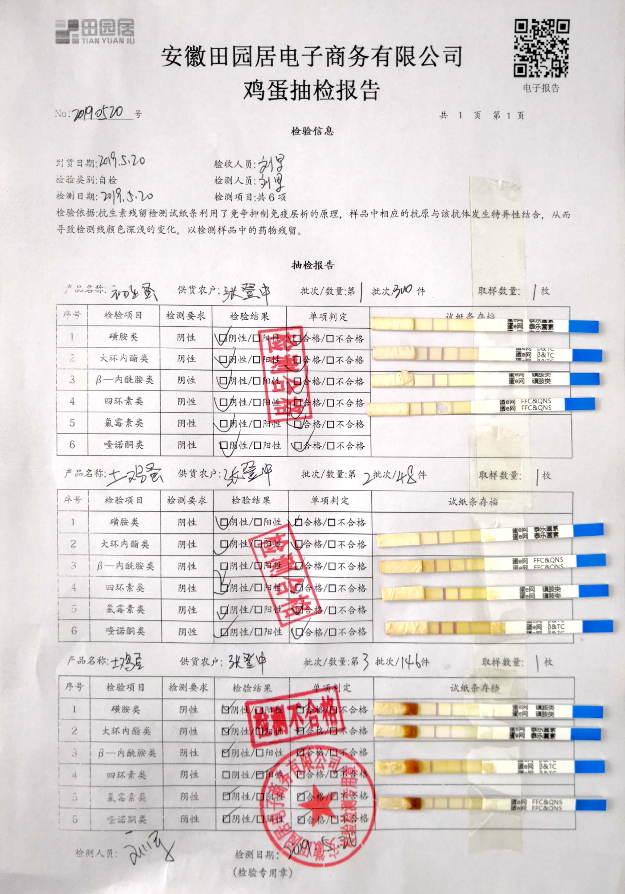 2019年5月20日雞蛋自檢報告