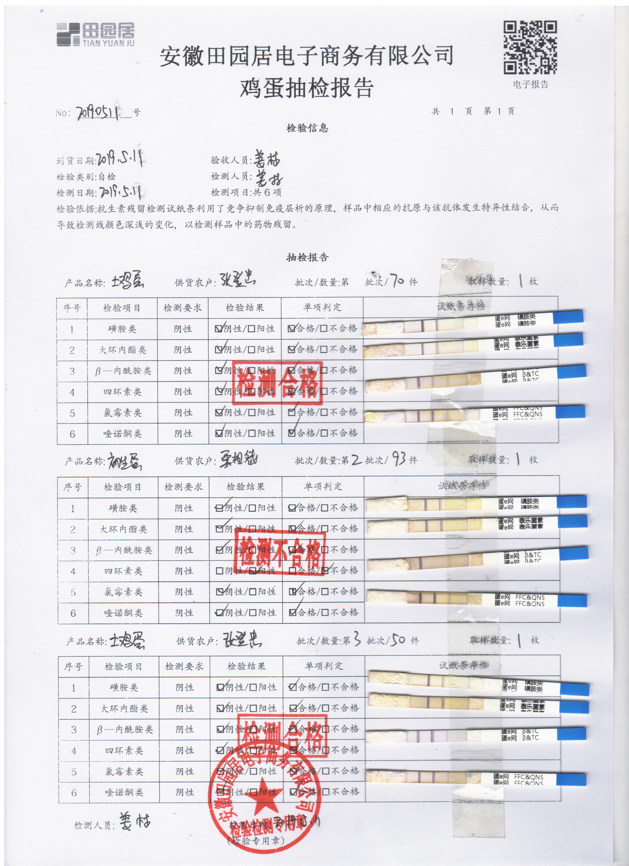 2019年5月11日雞蛋自檢報告