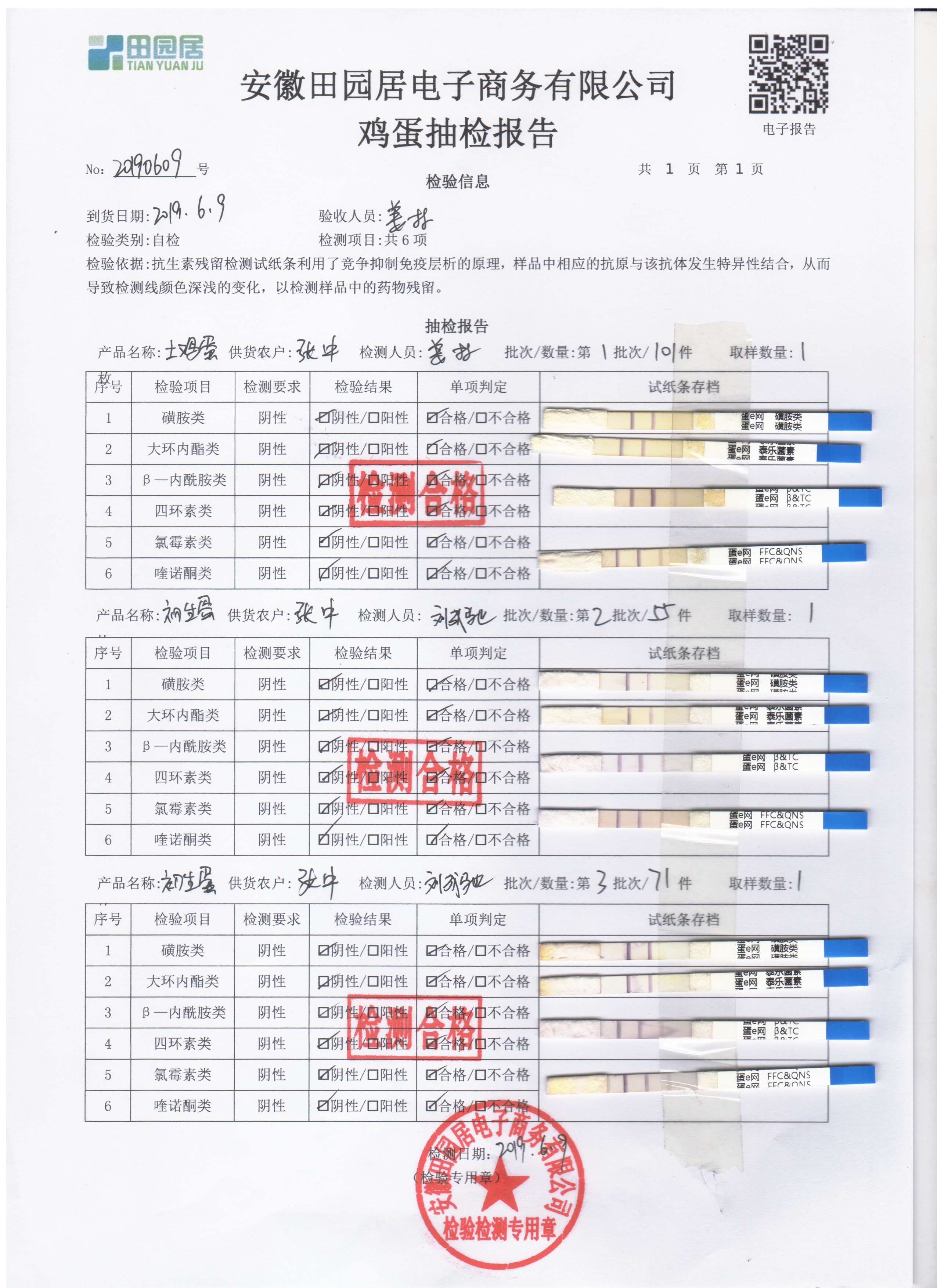 2019年6月9日雞蛋自檢報告