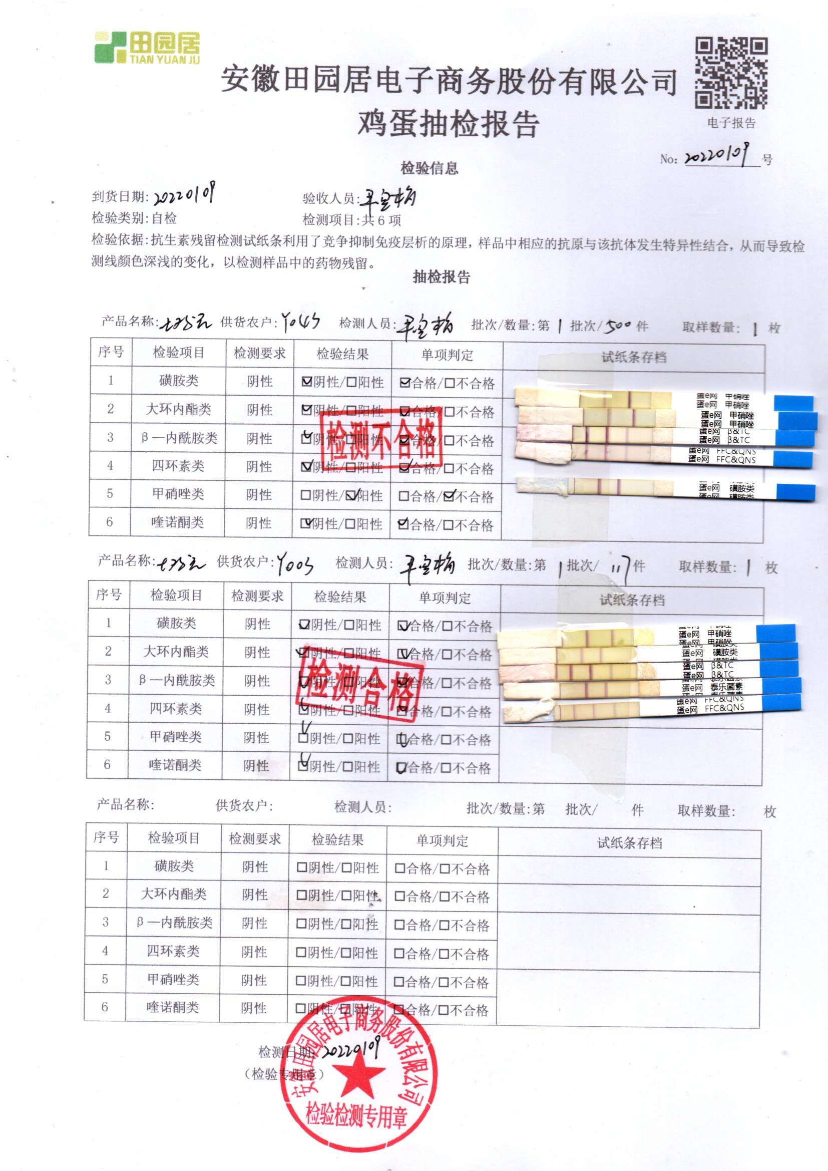 2022年01月09號鮮雞蛋檢測報告