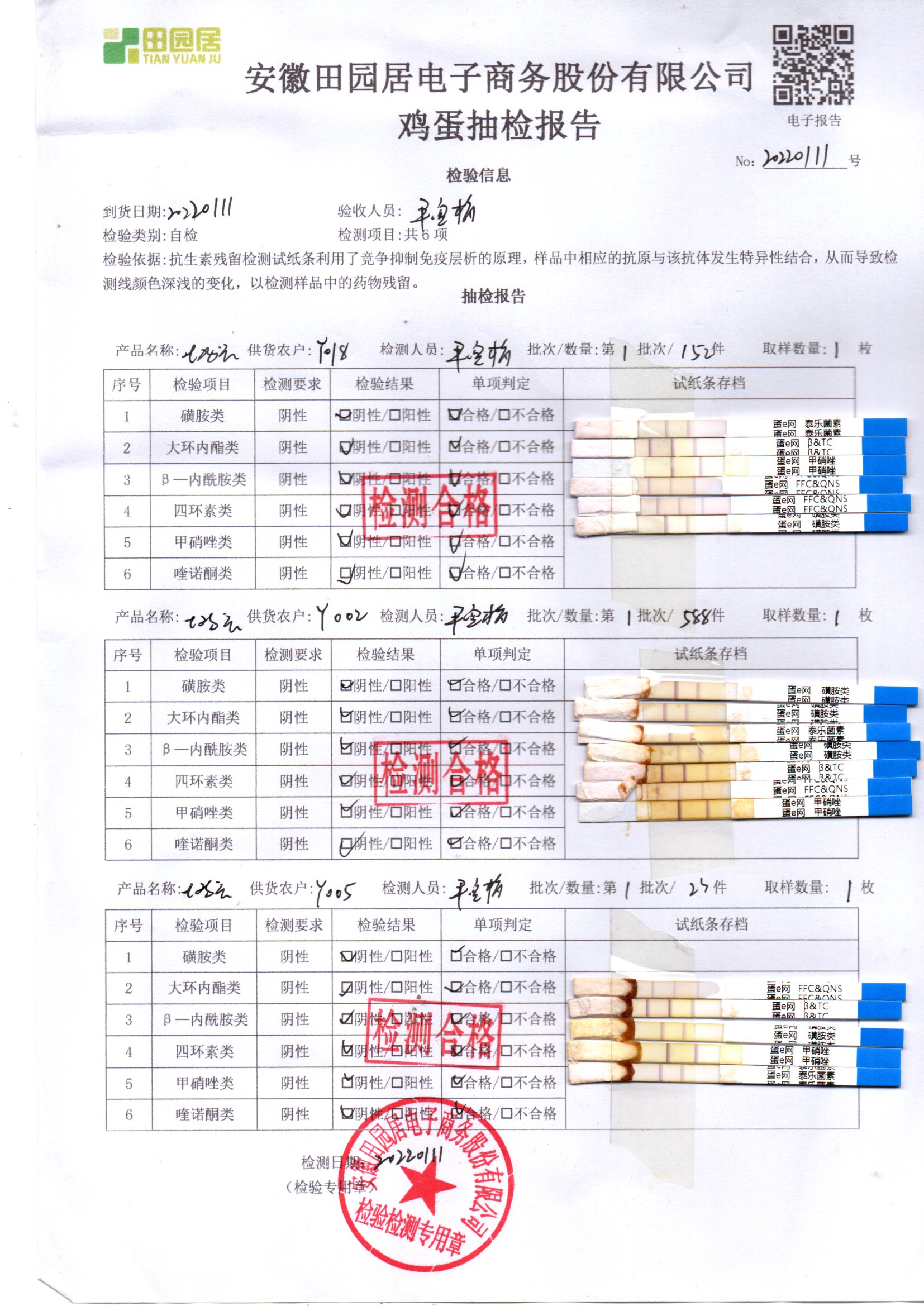 2022年01月11號鮮雞蛋檢測報告