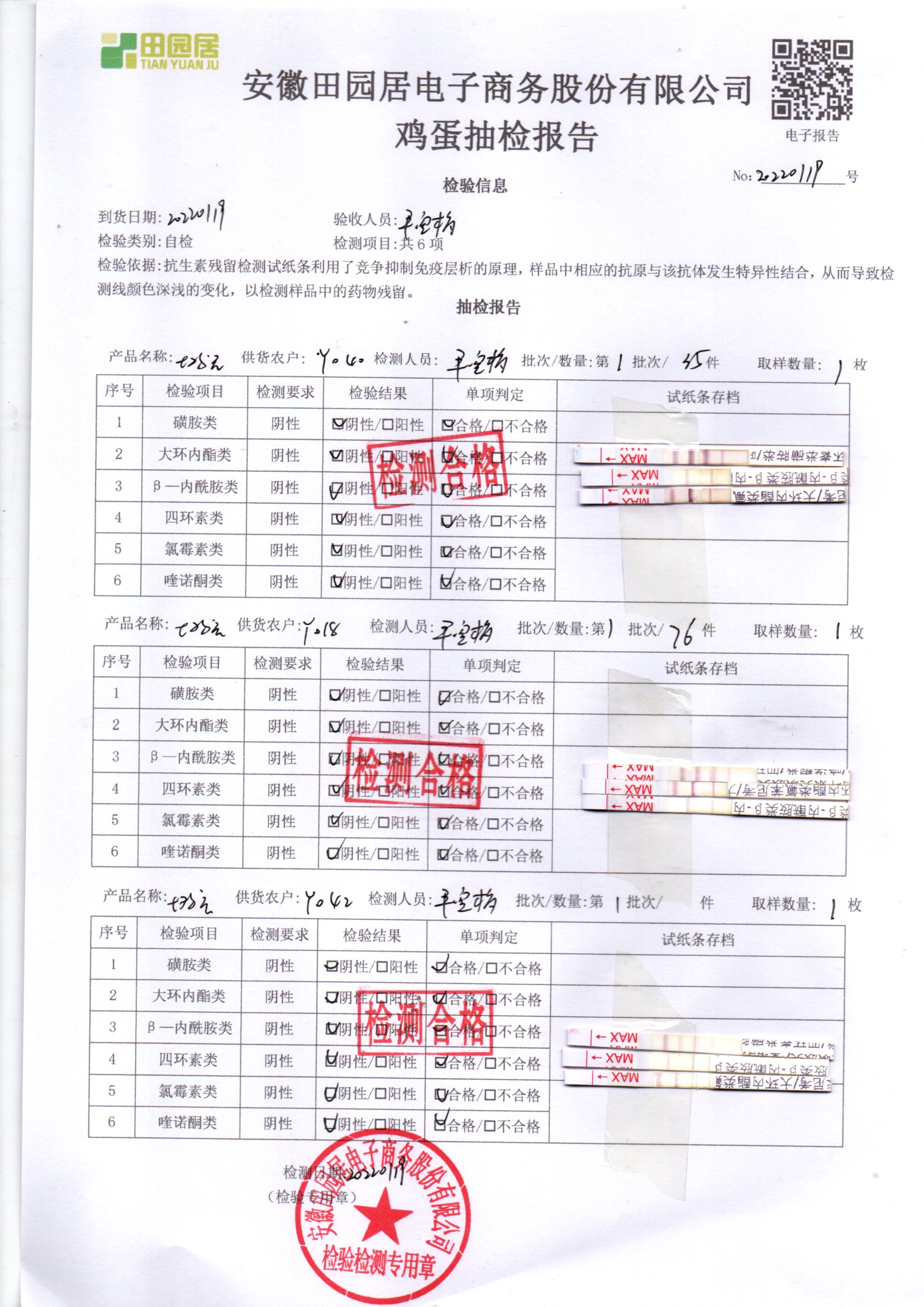 2022年01月19號鮮雞蛋檢測報告