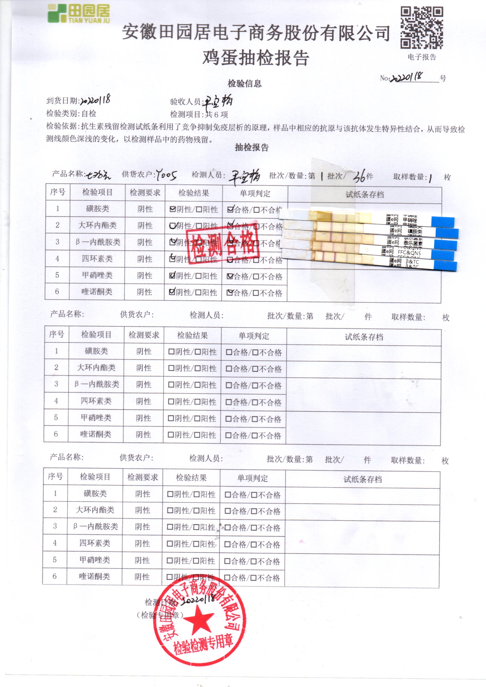 2022年01月18號鮮雞蛋檢測報告